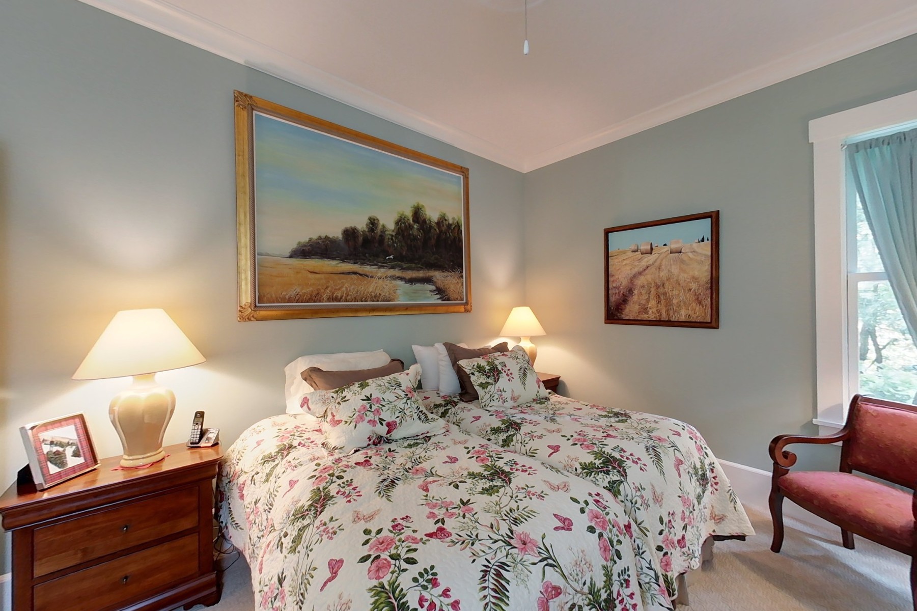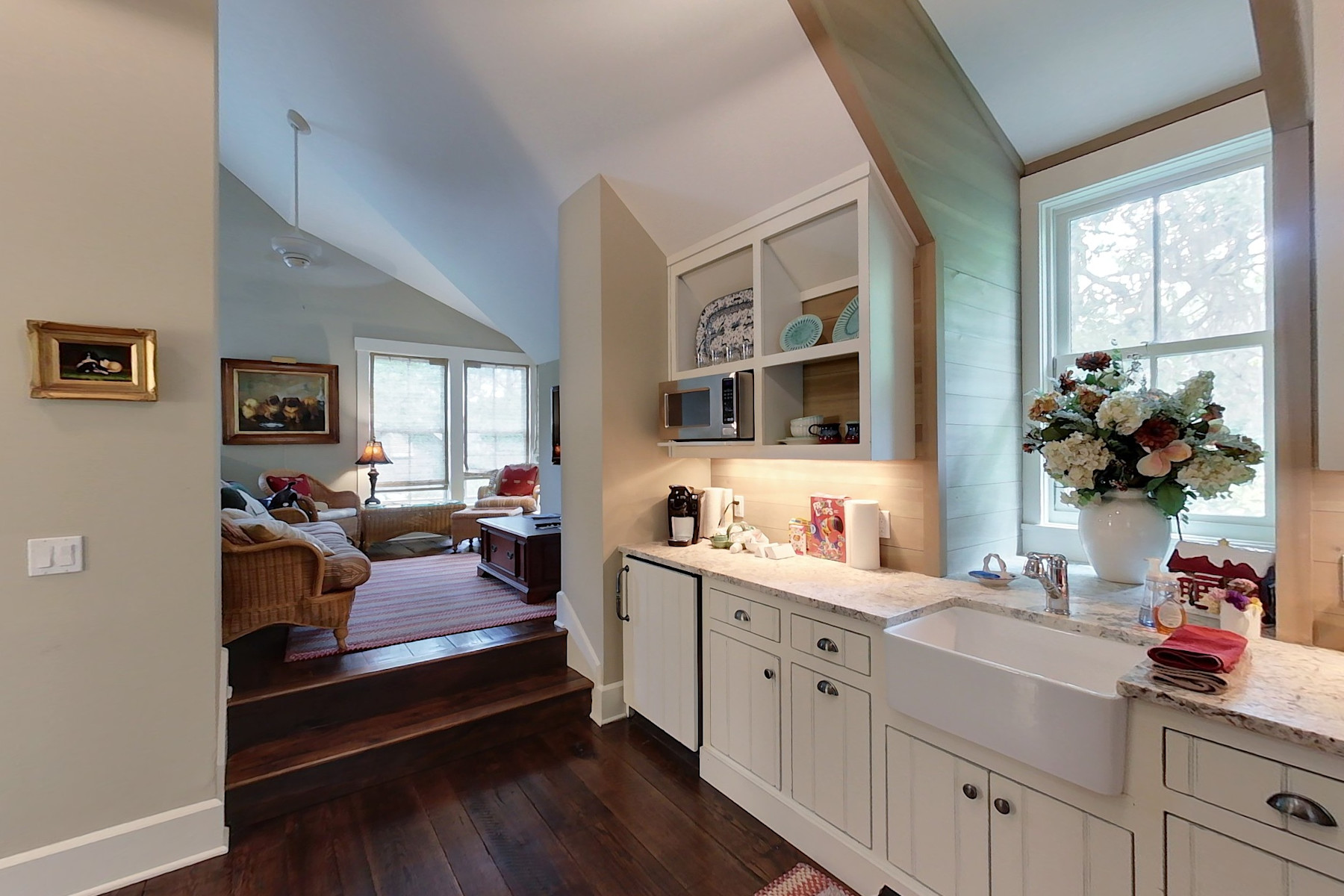 Meticulously crafted, the architect paid careful attention to the aesthetics and quality of materials on this custom home. Features include Savannah gray brick and tabby accenting, metal roofing and resilient Hardi Plank siding for the benefit of low maintenance, great looks and longevity. The main home has a lovely great room with tall ceilings, exposed timber beams, numerous built ins, an open plan kitchen featuring stunning granite counter tops. The great room has a double masonry fireplace serving both the inside (from floor to ceiling) and outside porch of the home. There are two bedrooms and two bathrooms in the main home; all highlighting custom detailing and superb craftsmanship. A second building connected by a covered breezeway includes a superb office with an immaculate guest suite upstairs and a generous two car garage with ample storage. This low country jewel is sure to please the most discriminating buyer as either a turn-key primary or second home.