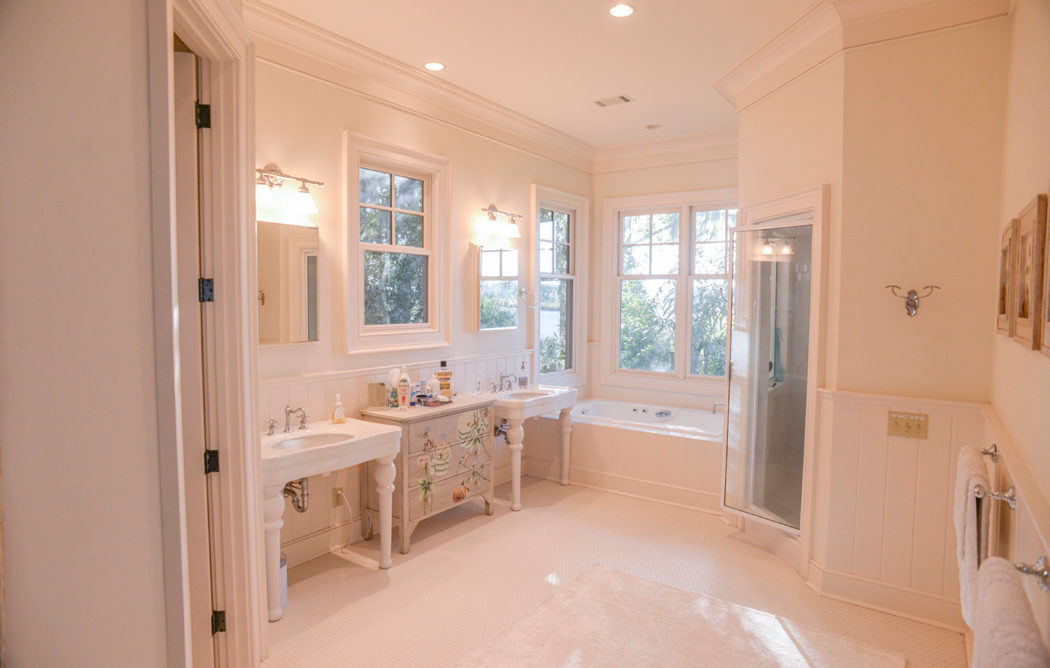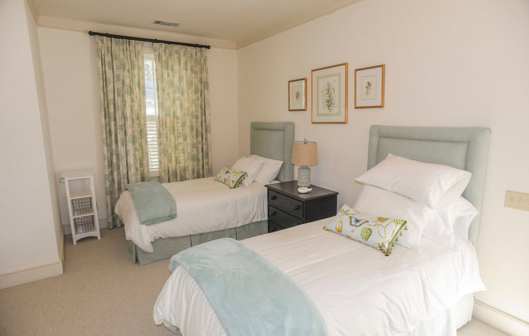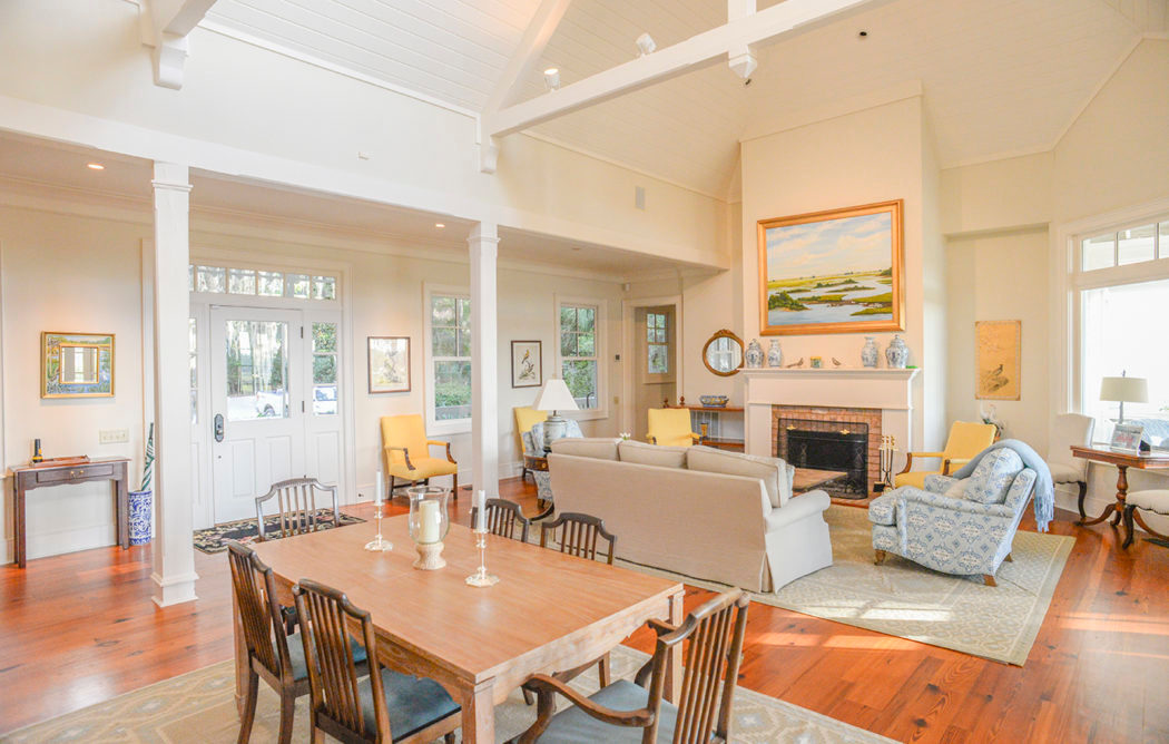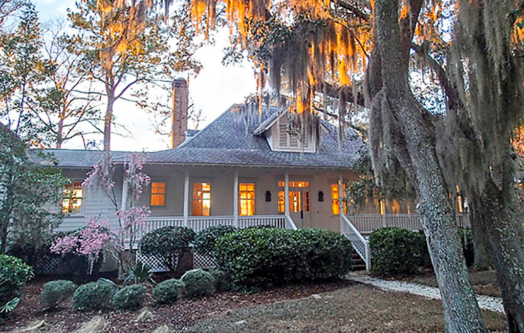 The one bedroom main house lives and entertains perfectly. A spacious living and dining room opens to the screened porch with fireplace. For more informal living the cherry paneled library offers cozy comfort. A screened porch connects to the two bedroom, two bath guest house with living room, kitchenette and screened porch. A separate two car garage has a conditioned room for toys. A second guest house is a studio with loft, kitchenette, full bath and private screened porch. This can be for overflow guests, an office or exercise facility. This is a finely crafted home on one of the most extraordinary sites on the Plantation.